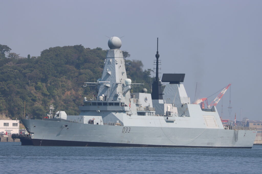 デアリング級は、ステルス性に考慮したマストが特徴的ですね。マストにあるサンプソンレーダーも印象的な形状しています(笑)